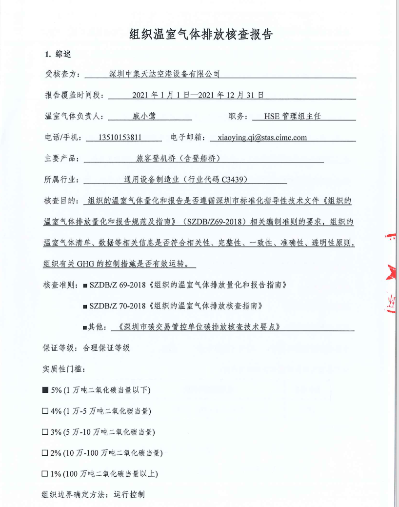 關(guān)于中集天達(dá)2021年度碳核查結(jié)果的公布